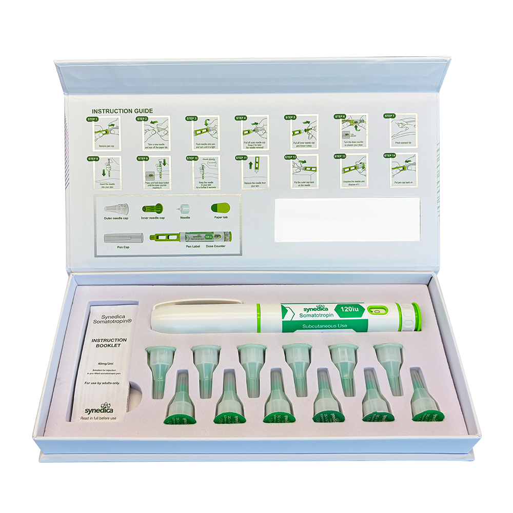 Synedica Somatotropin is a high-quality synthetic recombinant human growth hormone (HGH) designed for safe and effective supplementation. HGH plays a crucial role in muscle development, recovery, and fat metabolism, making it an advanced option for those seeking improved performance and body composition.