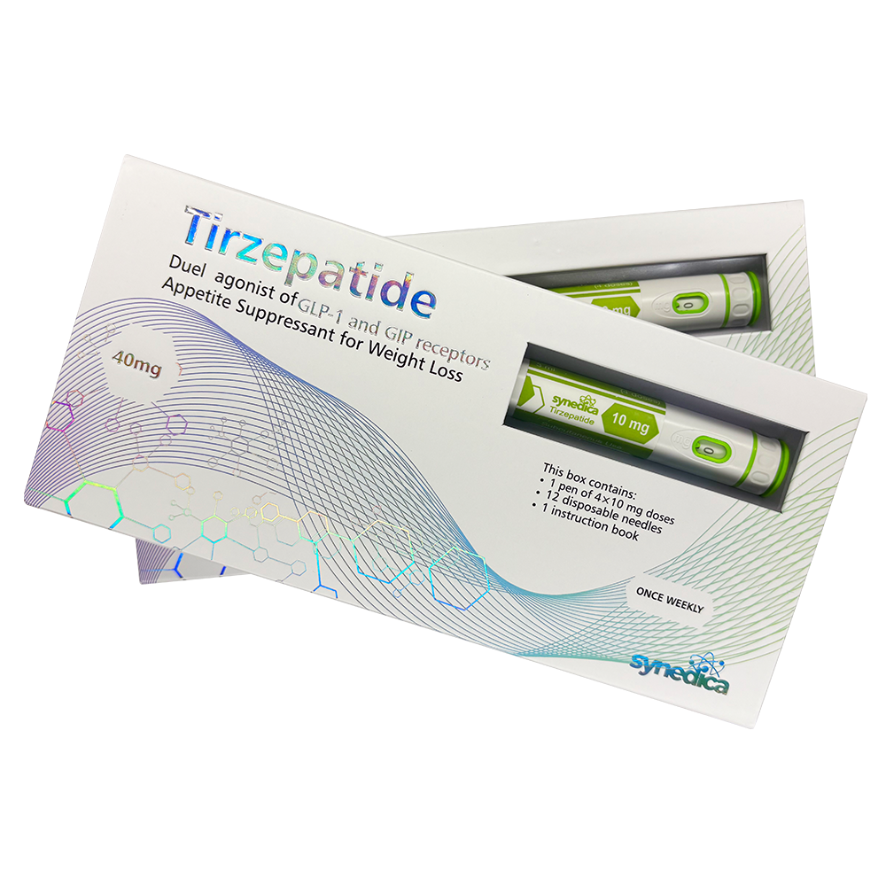 Discover Synedica Tirzepatide 40 mg injection pen kit – a dual GIP/GLP-1 agonist designed to support weight management by reducing appetite and regulating blood sugar. Includes pen, disposable needles, and easy dosing instructions.